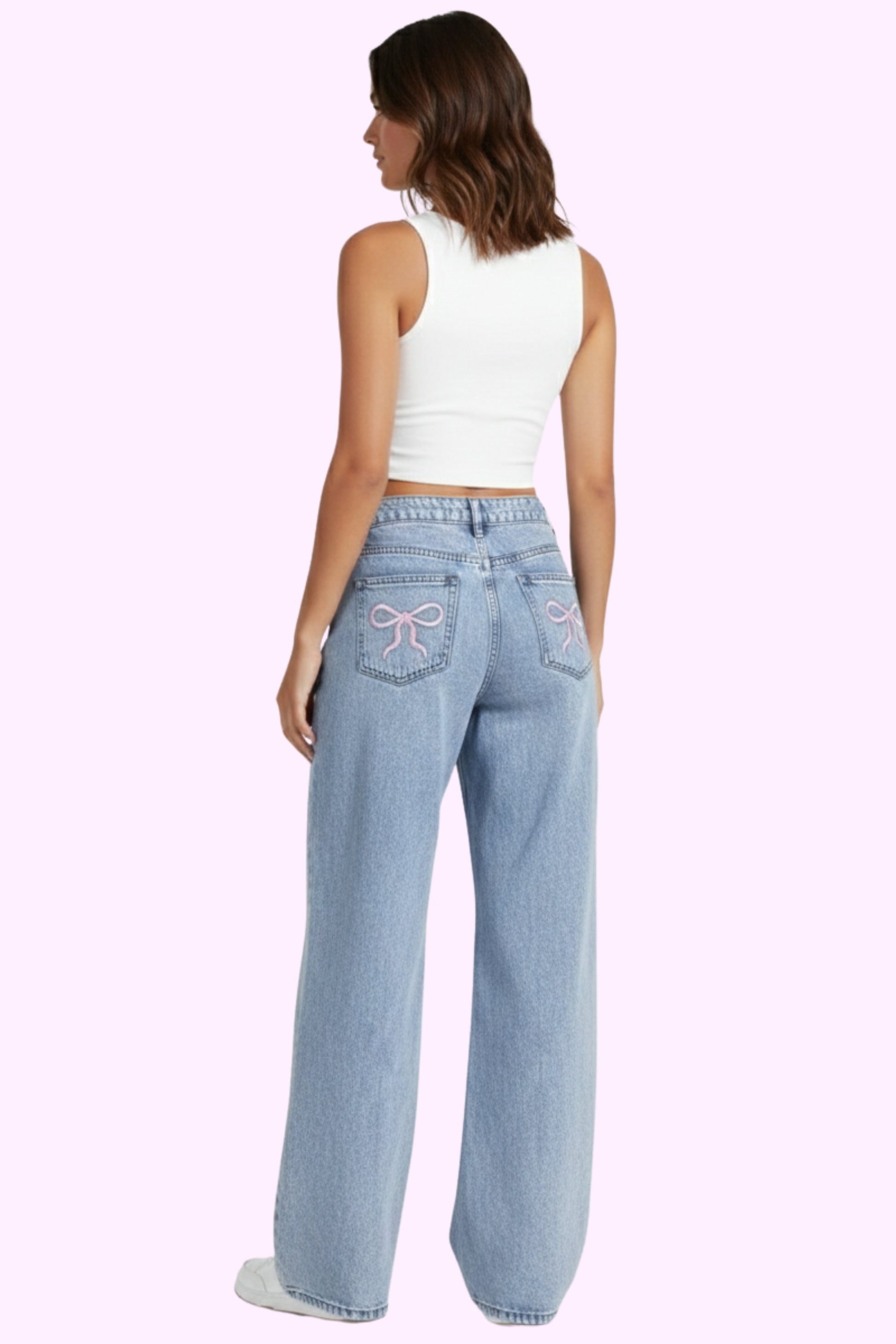 Get ready to rock these Bow-tiful Jeans! With their unique bow pockets and flattering wide leg cut, you'll be the envy of everyone on the block.