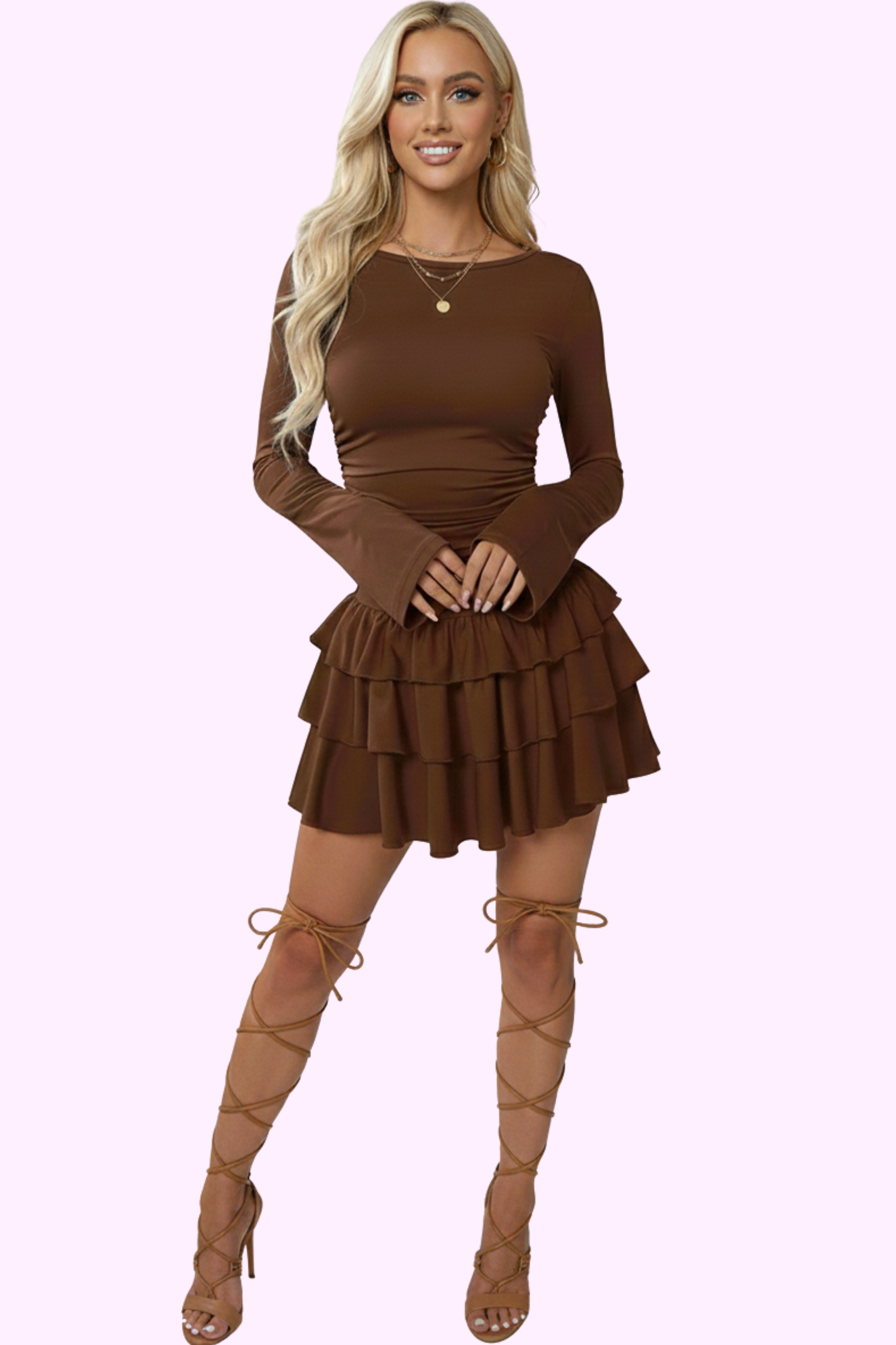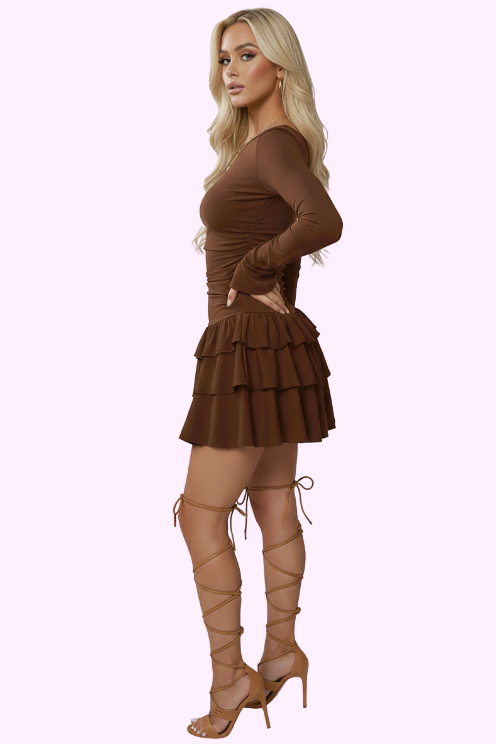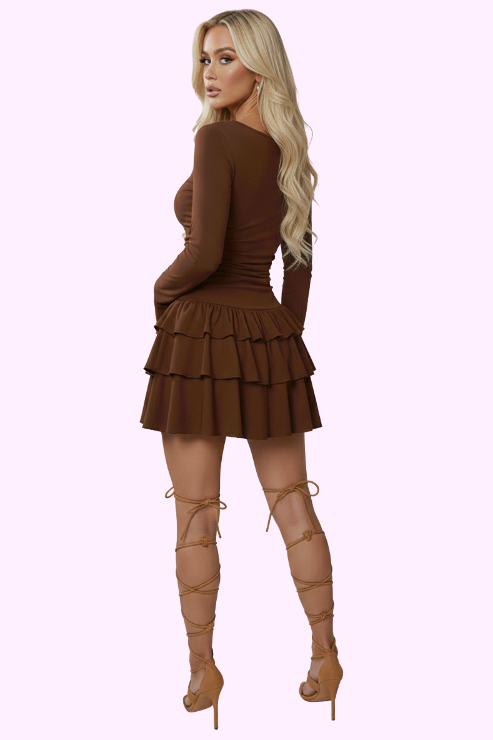 Step out in style with the Downtown Doll Dress. Featuring playful ruffles and long sleeves, this flirty number is perfect for making moves or just chilling. Elevate your vibe while keeping it fresh and classy—this dress has got you covered!