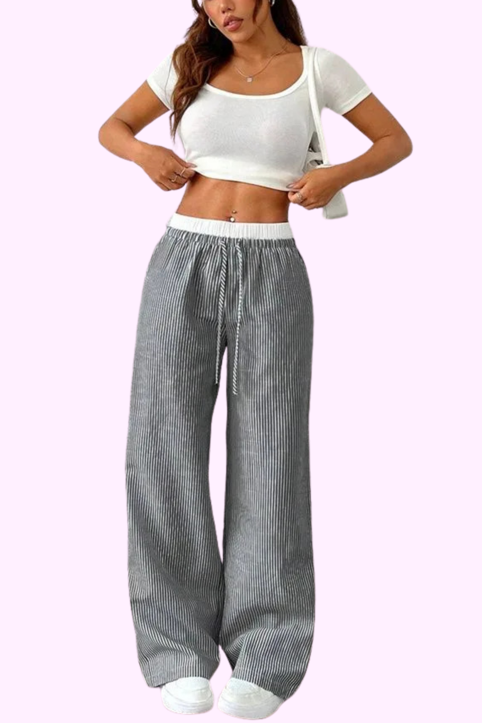 These black Main Character Energy Pants boast a wide leg and striped design, with a built in white waistband for added style and comfort. Now you'll have the energy to conquer your day and stand out from the crowd!
